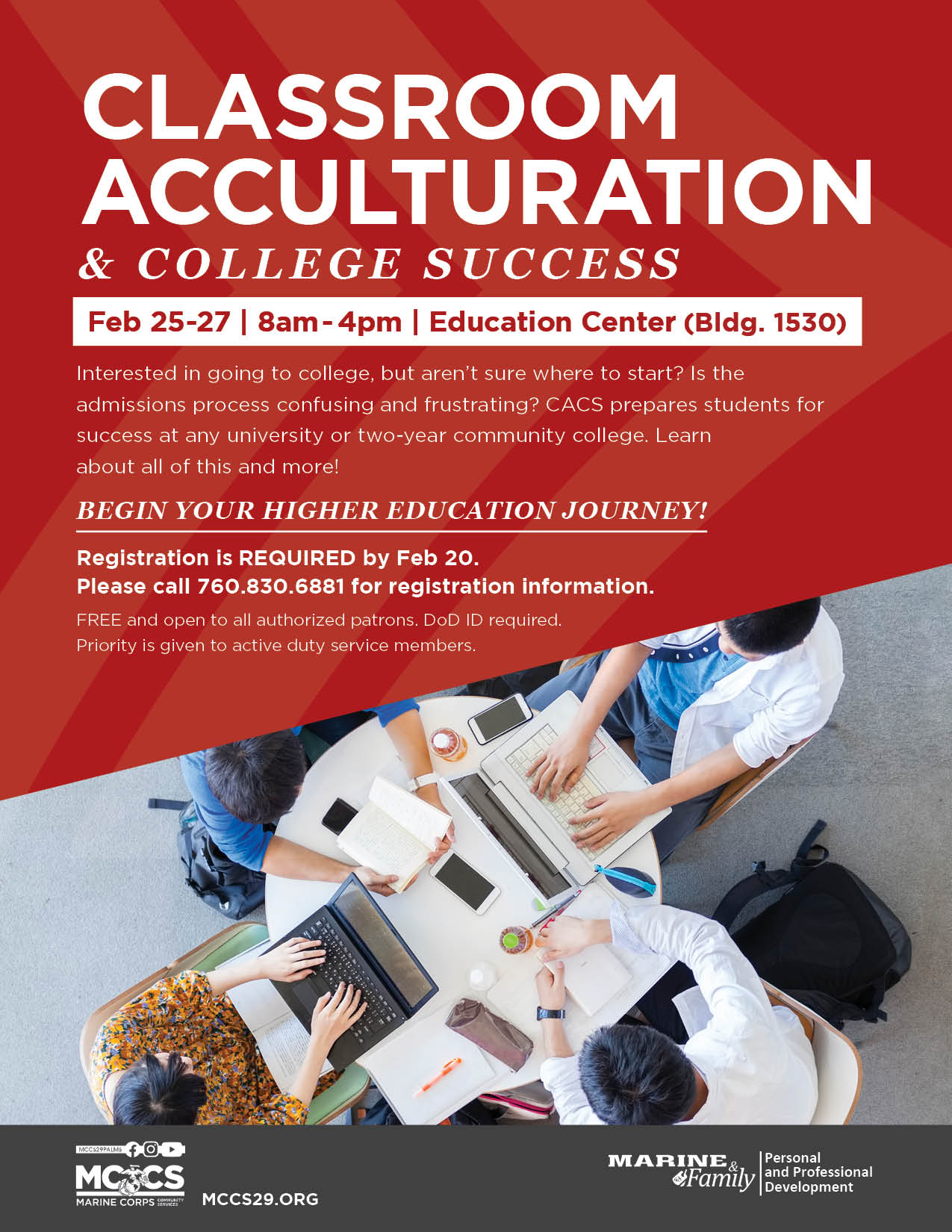 Please call (760) 830-6881 for registration information.