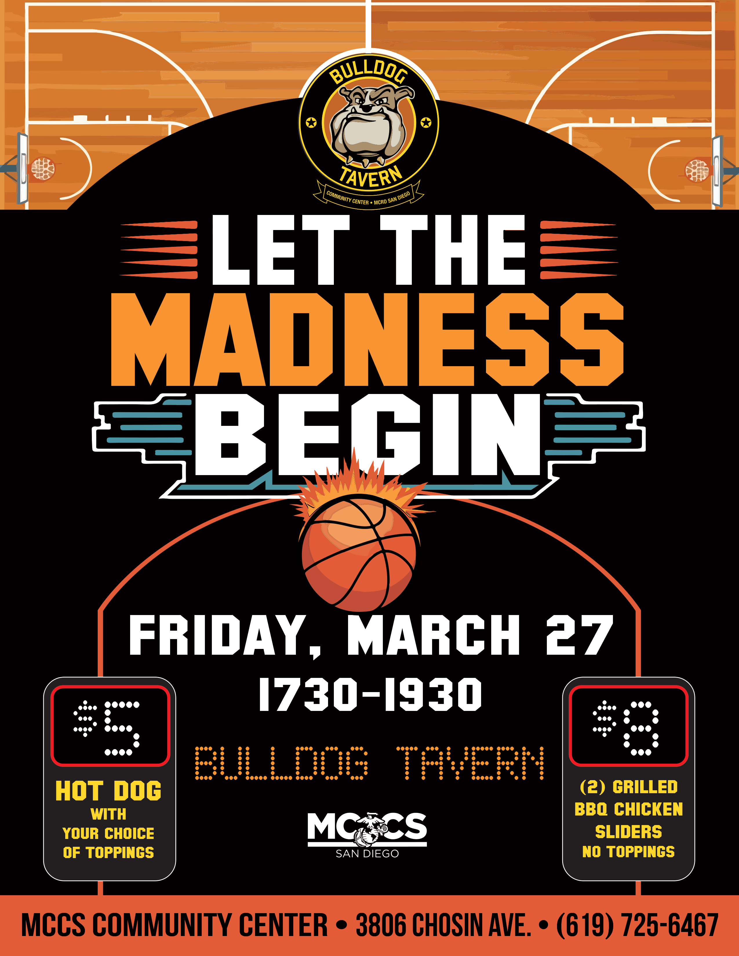 Join us at the Bulldog Tavern from 5:30 pm - 7:30 pm and enjoy $5 hot dogs with your choice of toppings and 2 for $8 grilled barbecue chicken sliders. Open to all authorized patrons.
