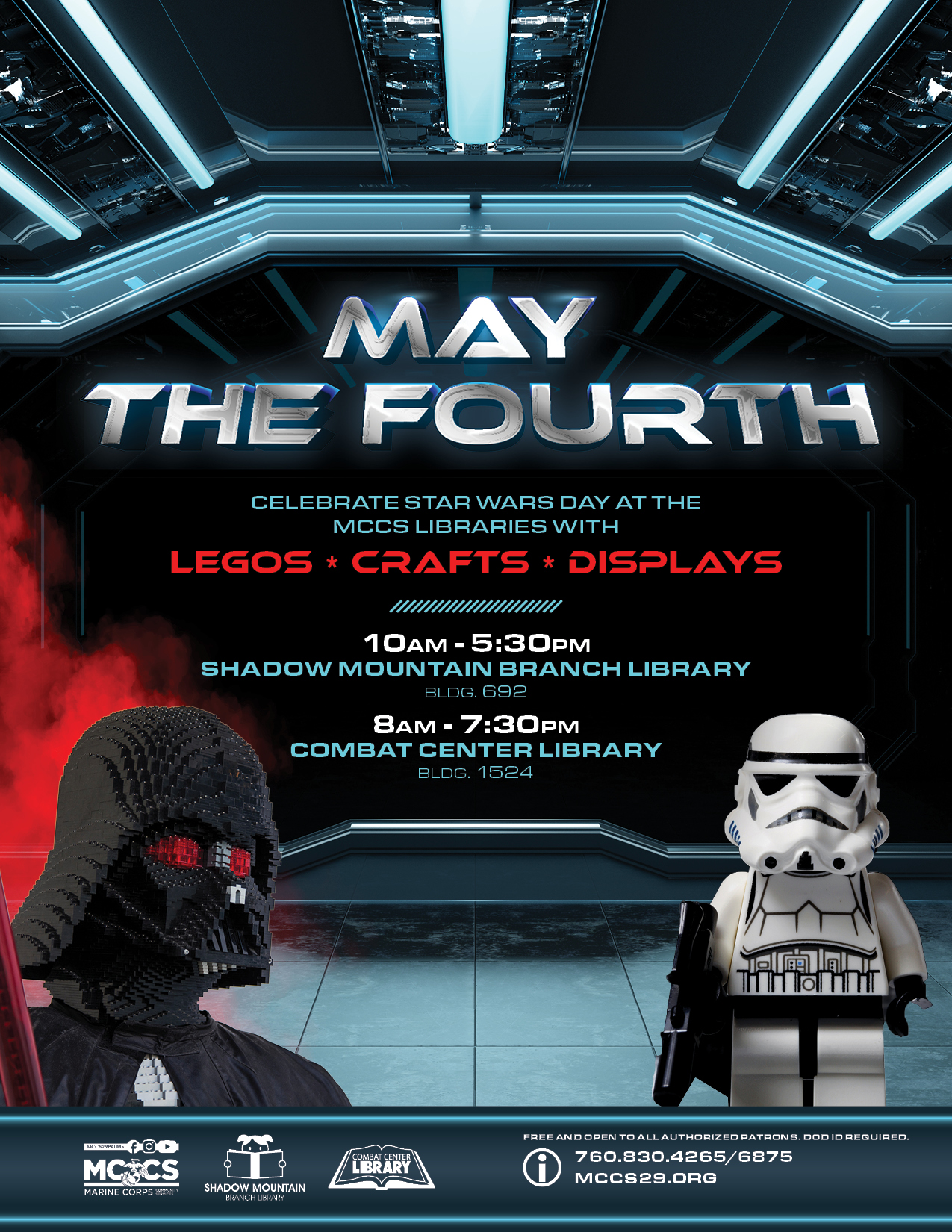 Celebrate Star Wars Day at the MCCS libraries with Legos, crafts and displays.